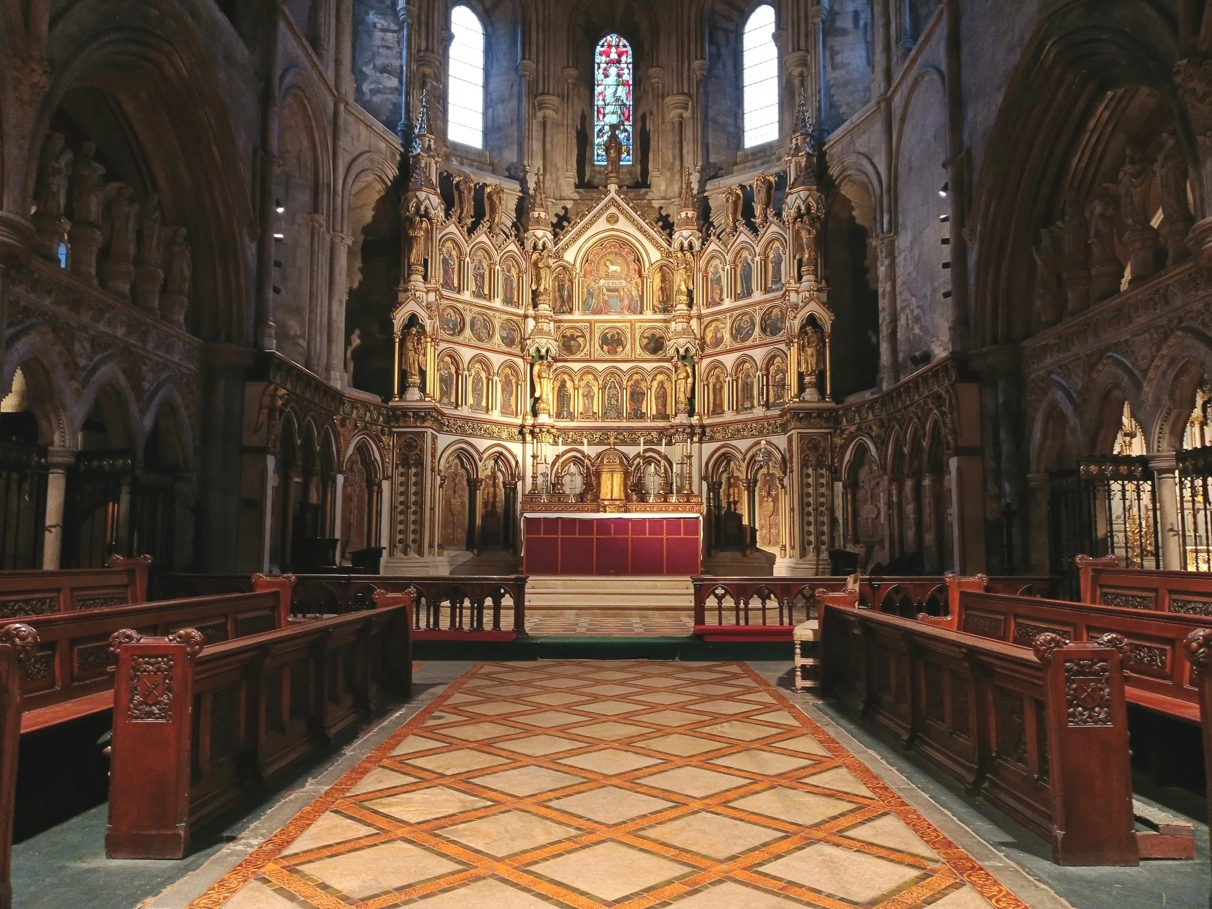 Following the fire around the high altar in 2017, the reredos was extensively restored, returning it to a standard not witnessed in living memory.